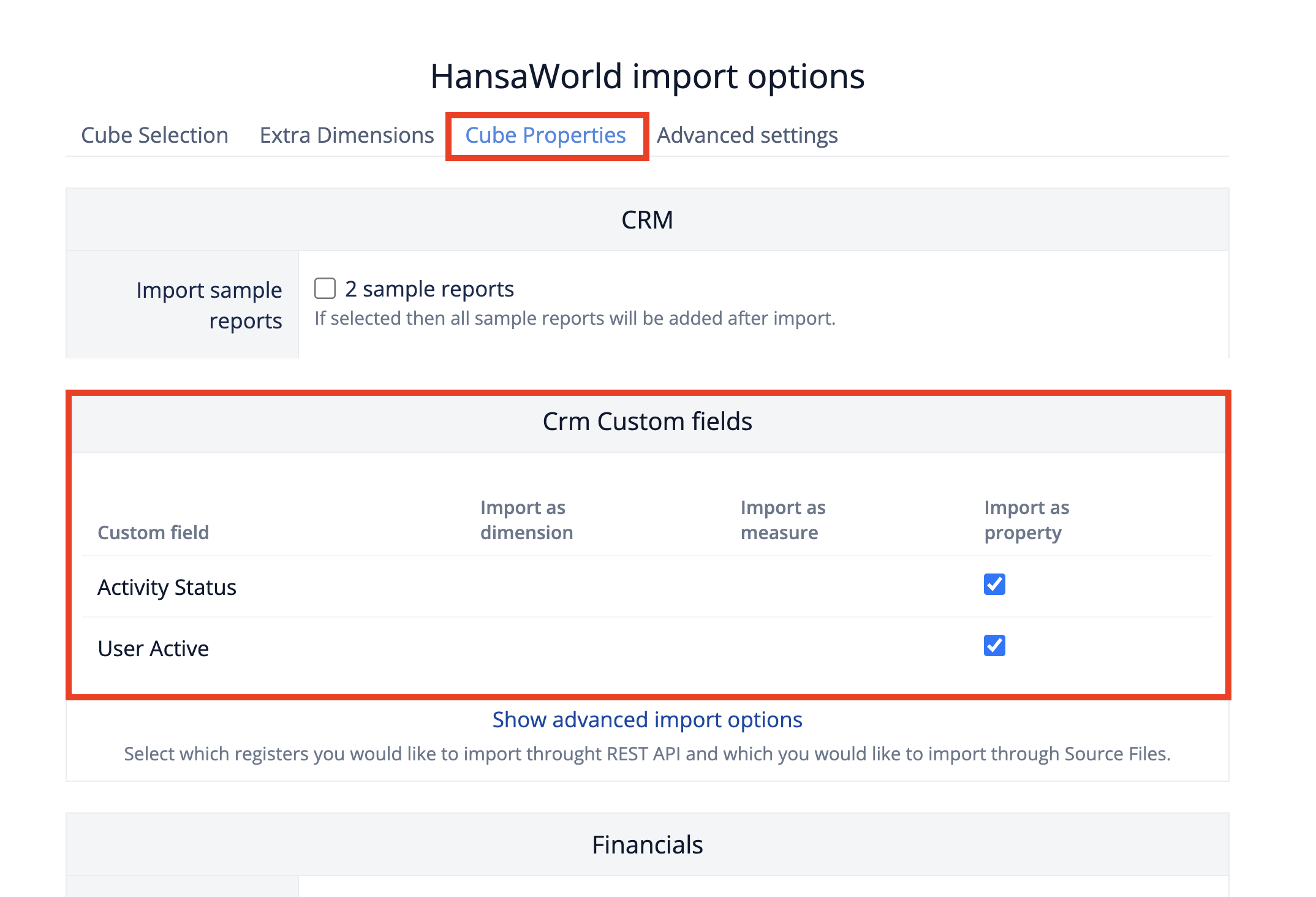 Select in Cube Properties section — Custom Fields section what you want to import and how.