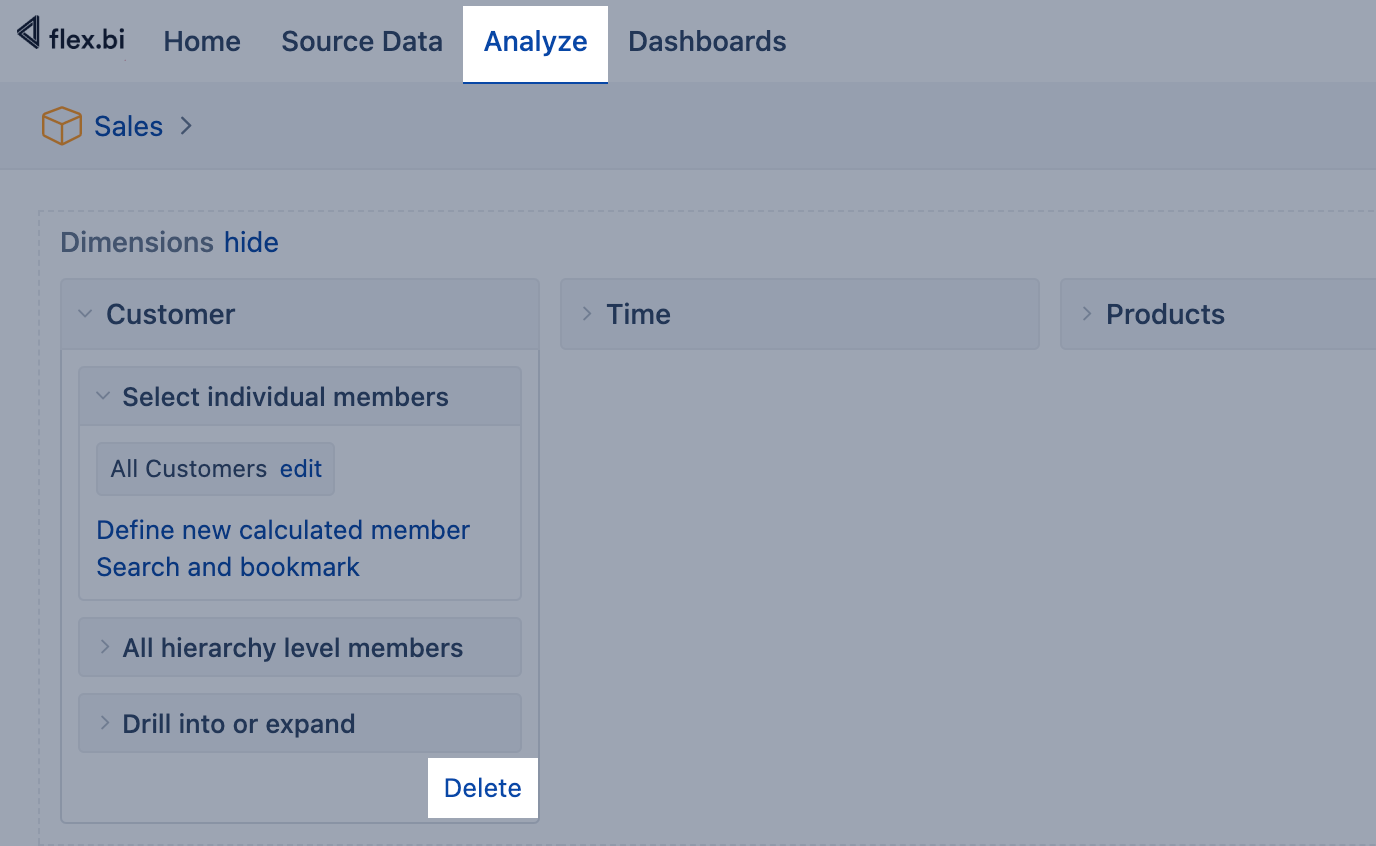 For changes in one dimension mapping, you would like to delete the dimension from all the cubes you are using this dimension. However, you can add additional measures and properties without deleting a dimension or measure. You can delete the dimension in the report creation screen in the Dimension selection list.