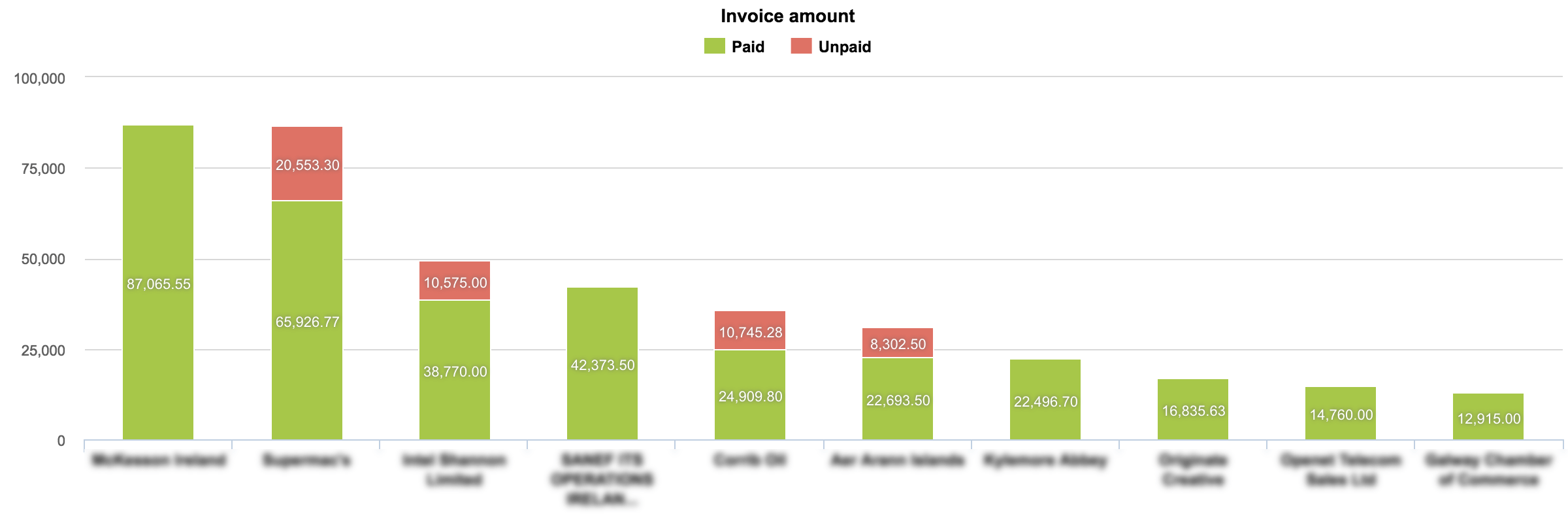 Paid and Unpaid Revenues by Customer Top 10