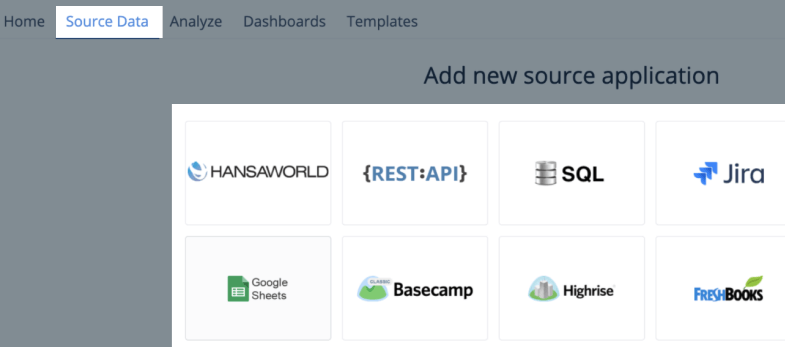 Go to Source Data tab and select data import from SQL SELECT, REST API, Google Sheets, Excel file, or source system flex.bi has an integration.