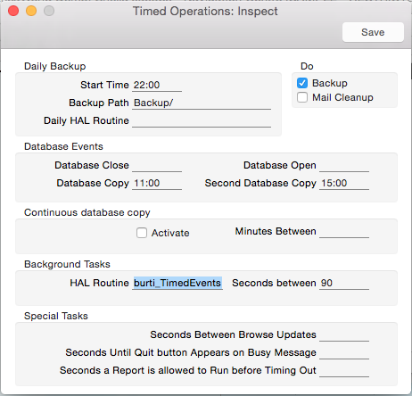 Add the funcition burti_TimedEvents to background tasks and 90 seconds to run: