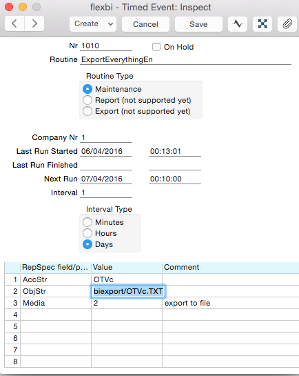 The provided timed events and export packaged can differ from the standard functionality provided from StandardERP (or HansaWorld) by letting you execute multiple events and defining automated export paths.