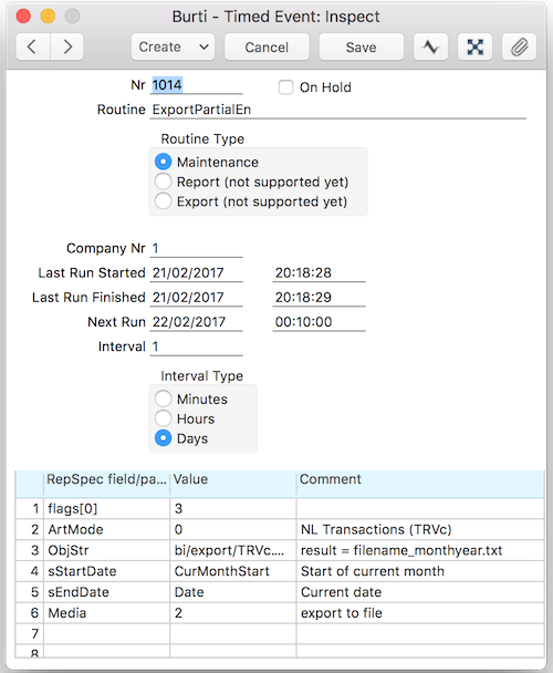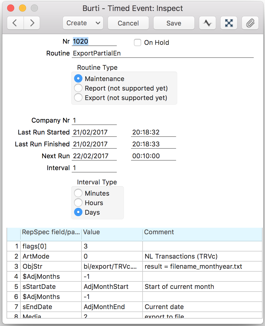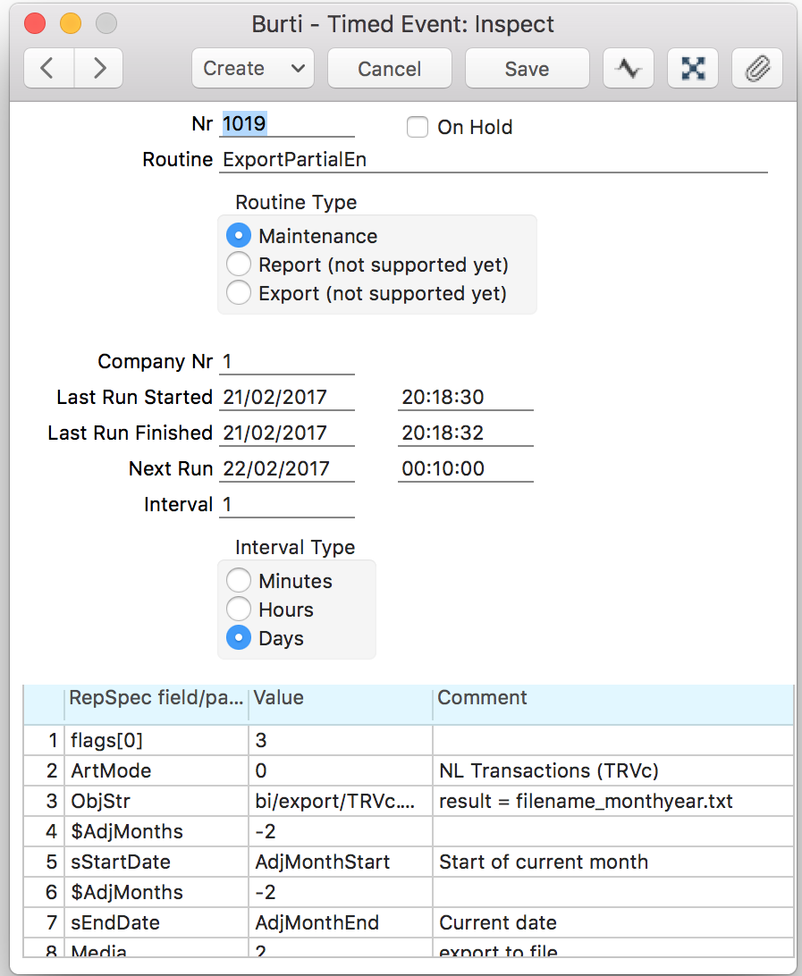 If you want to replace data of previous month, you can do it with Timed Events as well. In this case you have to add 2 more lines.- Fill in the standard fields as needed (Select Maintenance as routine type)