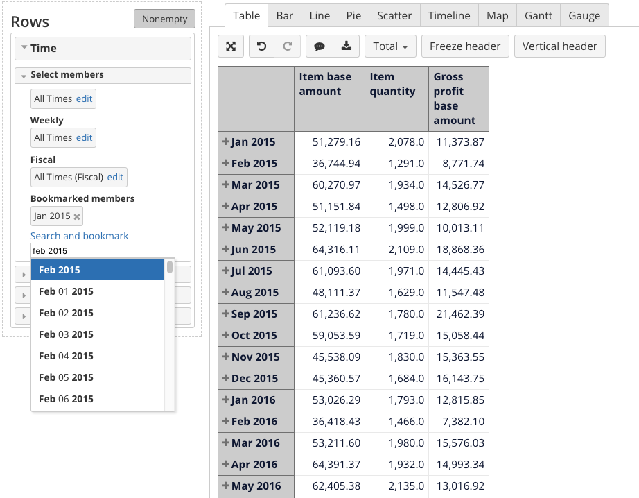 After you have bookmarked the members they are available for selection.