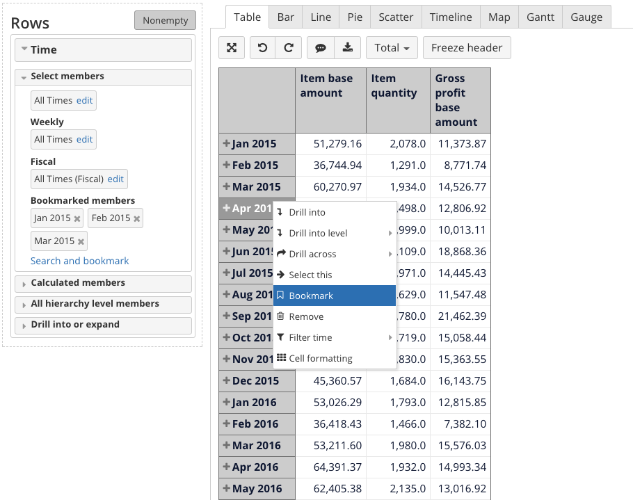 Using bookmarks in calculated members