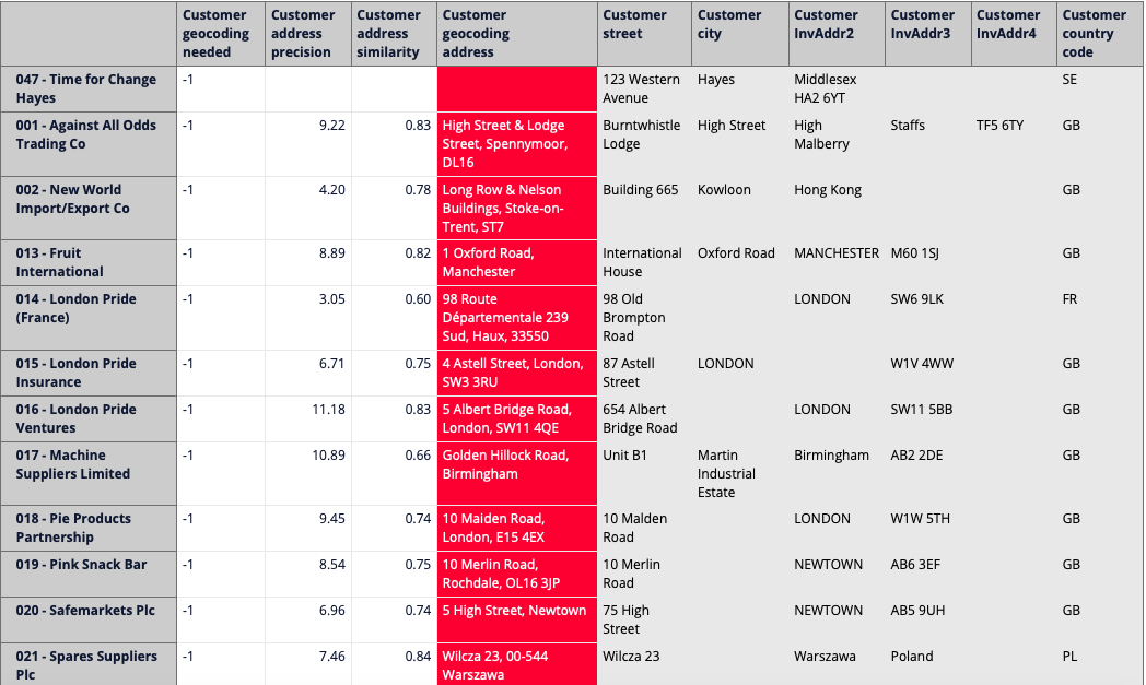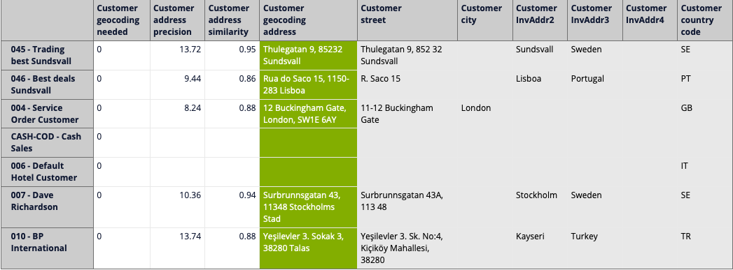 For analyzing geocoding address precision and similarity settings and the quality of the address data in HansaWorld, you can use special reports, like the ones we have included in our Templates library:
