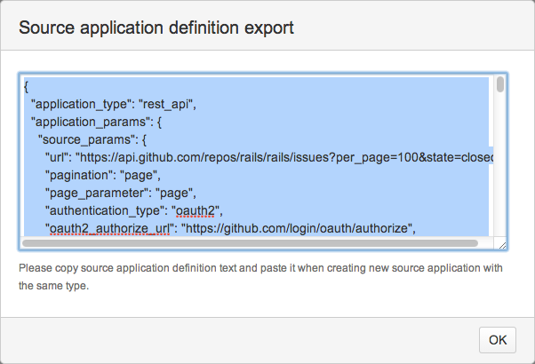 If you would like to use this GitHub issues import example from this tutorial then you can use the following source application definition: