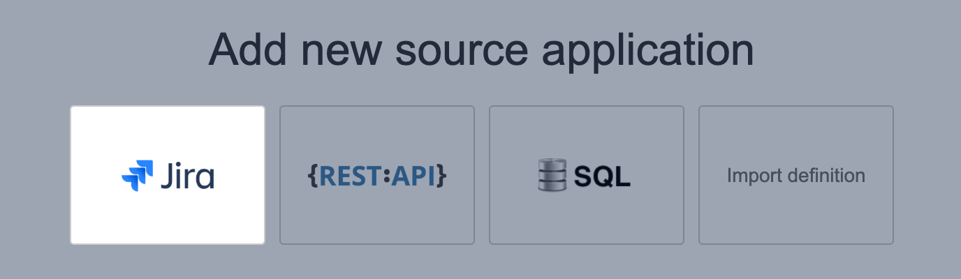 From the Source Data tab select Add new source application and then select the Jira application as a source application type.