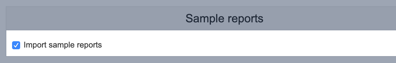 Select the option "Import sample reports" to get a set of reports created by flex.bi and have a first look at your data in flex.bi.